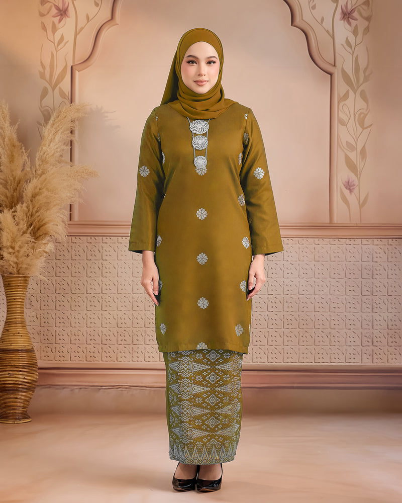 KURUNG LAYLA (MODEN) | OLIVE - SILVER