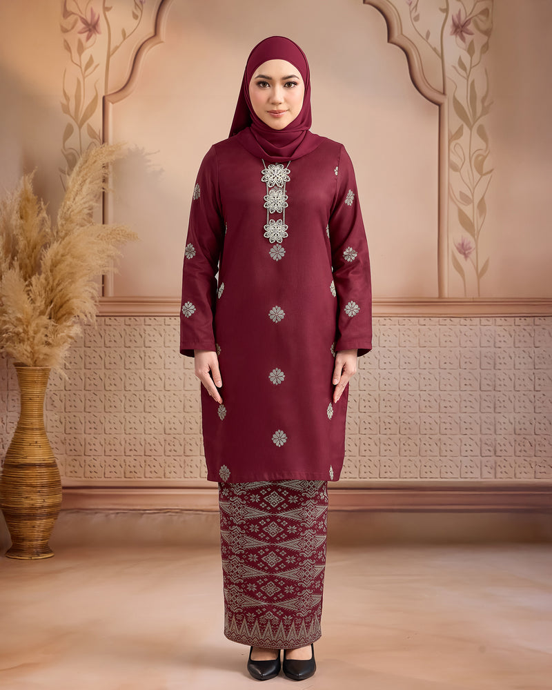 KURUNG LAYLA (MODEN) | BURGUNDY - SILVER